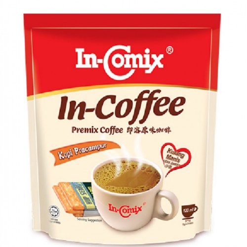 In-Comix In-Coffee Premix Coffee Less Sweet is made from quality coffee beans. Blended with high quality non-dairy creamer and sugar.